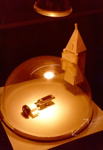 Et à cette occasion j’avais réalisé pour l’exposition un mobile qui fonctionnait avec un petit panneau solaire (voir photo). La lumière faisait tourner inexorablement une voiture, représentée par une roue, autour du beffroi de Dreux symbolisé par une silhouette blanche en bristol.