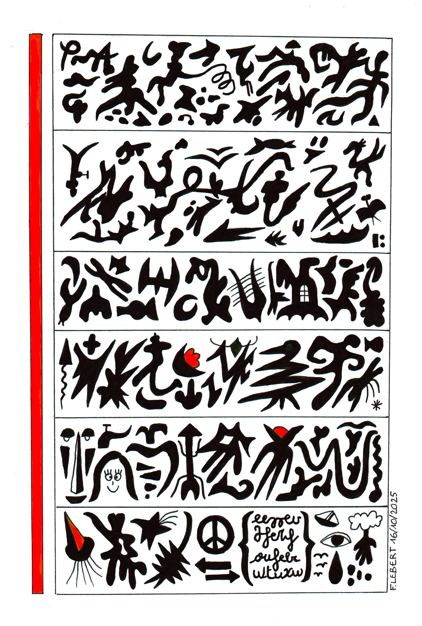 Surréalistement, c’est un parapluie qui écrit un roman d’amour sur une machine à écrire en train de fondre. Et pourtant, malgré tout ça, il recommence. Parce qu’il n’y a rien de plus effrayant que le silence après une phrase. Parce qu’il croit encore qu’un mot bien placé peut sauver un monde mal foutu. Parce qu’au fond, l’art n’a jamais servi à rien — sauf à rappeler que rien n’est jamais perdu tant qu’on continue à le nommer.